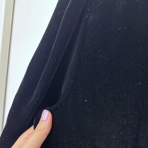 This Saloni Tabitha Velvet Mini Dress is in good condition. Features a luxurious black velvet material with white / silver crystals and beads (beaded diamante embroidery). Short sleeves, V neck, cutouts in the front, short mini length. There is a tiny white speck dot on the back (see the 3rd from last picture). There is fading at the underarms (only visible under certain lighting--see the last 2 pictures for different angles).