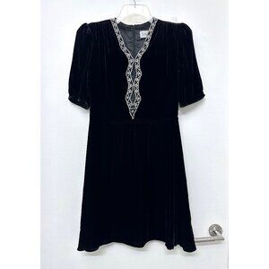 Saloni Tabitha Velvet Mini Dress Black Diamante Embroidery Beaded Crystal US 8