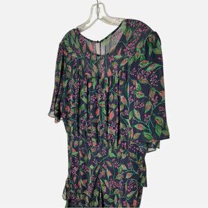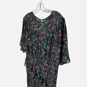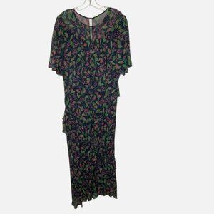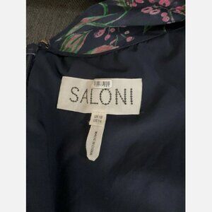 Saloni Vida Dress Silk Short-Sleeve Midi Ruffled Blue Floral Print Size 14