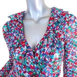 Saloni Women's Size 4 Silk Blend Iman Red + Blue Ruffled Wrap Blouse NWT