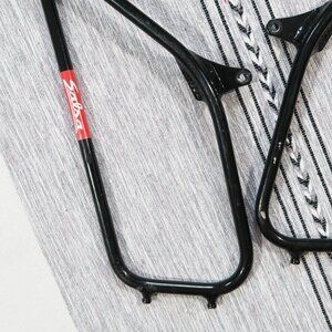 Salsa Down Under Front Rack. Great bike touring rack that allows your panniers to sit a little lower for a nice low center of gravity. These are made from a lightweight aluminum with a black powder coat finish. Rated to 33 pounds (15kg), this is more than durable enough for heavy loads. There are areas where my panniers have worn off the powder coating, but they're still in great shape! This just includes the racks - mounting bolts are not included, but easy to pick up from a bike shop or hardware store.