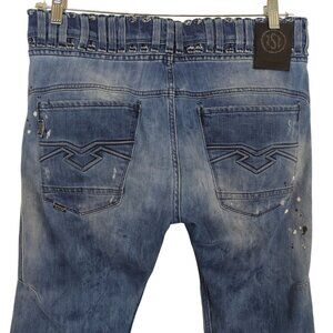 Salsa Jeans Men’s W33 L32 Blue Distressed Paint Splatter Slim Fit Button Fly