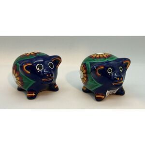 Salt And Pepper Shakers Televera Mexico Signed Mexican Pottery Pigs Colorful