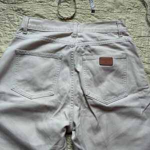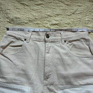 @lindalemonjello no bother at all! There are two “whites” on these pants. The base/main part of the pants is natural cotton denim, which is like an undyed plain color (cream/beige). The patches themselves are “salt” which is stark white 😊 hope that helps!