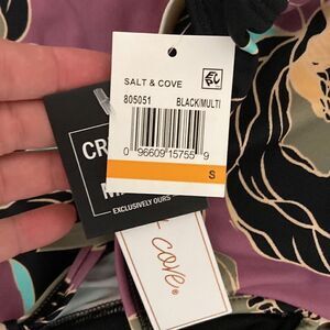 Salt + Cove BLACK MULTI Midnight Bloom V-Wire Tankini Swim Top, NWT Small size