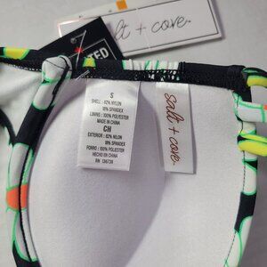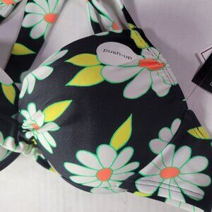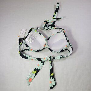 Salt + Cove Black Floral Daisy Push-Up Bikini Top With Tie Straps Size S