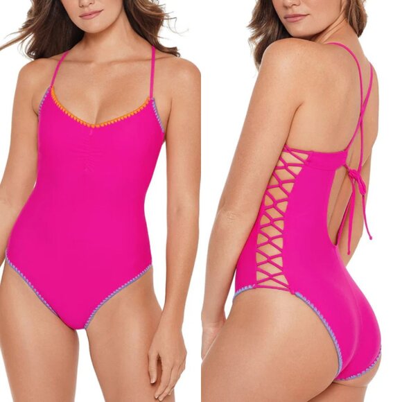 Make a bold statement with the Salt + Cove Strappy Side One-Piece Swimsuit, designed to turn heads with its eye-catching details and sleek silhouette. Featuring strappy side cutouts, this swimsuit adds just the right amount of allure while maintaining a flattering, supportive fit.