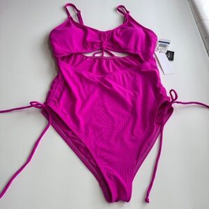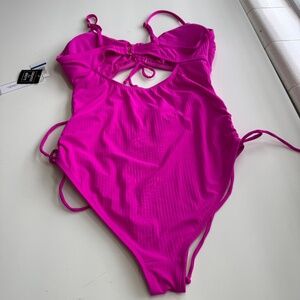 Salt + Cove Juniors Adjustable Pink Cinched Ribbed One Piece Swimsuit