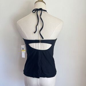 Add edge to your swim style with this Salt + Cove “Ringing It” halter bikini top in sleek black. Features metallic ring details, adjustable neck and back ties, and a flattering junior fit. Perfect for mixing and matching with any bottom. Size Medium. A bold, confident piece for beach days, pool parties, and vacations.