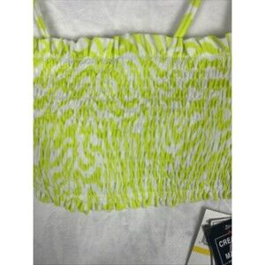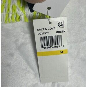 Salt + Cove Tankini Top Swimwear Smocked Green White Size Medium NEW
