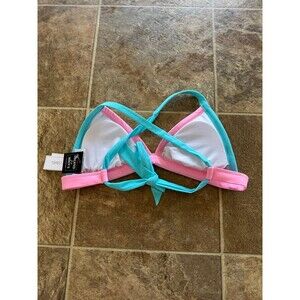 Salt + Cove Triangle Colorblock Bikini Swim Top Blue Multi Size Large
