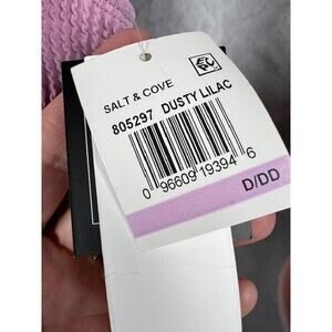 Salt + Cove Women's Textured One Shoulder Bikini Swim top in Dusty Lilac, designed for juniors in size D/DD. Made of 95% Polyester and 5% Spandex, this bikini top is crafted in Indonesia. It features a stylish one-shoulder design with a textured finish, ideal for a chic and trendy beach look.