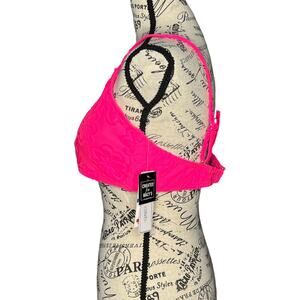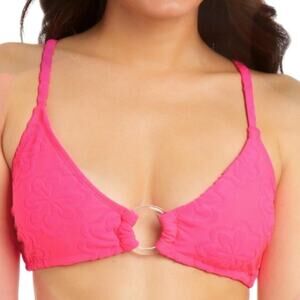 Brighten up your swimwear collection with this Salt + Cove juniors bikini top in size XL. Designed in soft terry cloth with a textured floral pattern, it’s both trendy and comfortable. The vibrant pink color and O-ring front detail give it a stylish touch, perfect for poolside lounging, beach days, or your next vacation getaway. Pair with your favorite bottoms for a standout look.