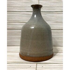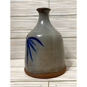 Salt Glaze Gray & Blue Vase With Brushstroke Design Handmade 5.75" Tall