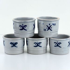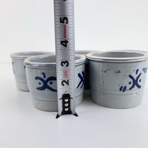 Salt Glaze Bowls made of glazed ceramic with blue decorations and has no visible damage. Nice small size.