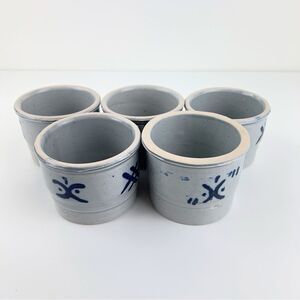 Salt Glaze Pottery Dish Boho Blue Glaze Handmade Vintage Ceramic Bowl Set Of 5