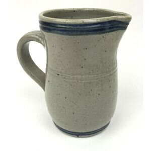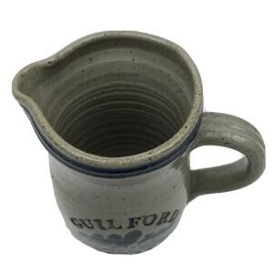 Salt Glazed Pottery Pitcher GUILFORD Est.1689 Stoneware Gray Cobalt Blue Leaves