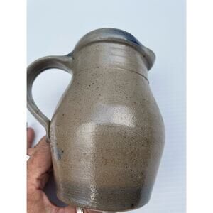 Salt Glazed Stoneware Small Pitcher Creamer With Blue Cobalt Heart Country Farmhouse