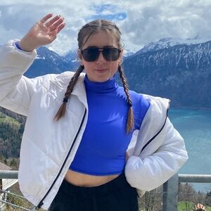Very good condition. Stylish blue sweatshirt. Features a high neck and long sleeves. Perfect for casual wear at the beach , surfing, swimming and even under your skin jacket to protect from UV rays. Lemme