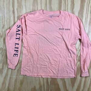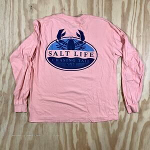 Salt Life Chasing Tail Pink Long Sleeve Graphic T Shirt Crab on Back Mens Large