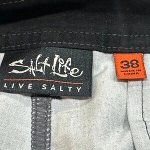 Salt Life Stealth Bomerz Boardshorts Bathing Suit Swim Size 38. These shorts are made of 74% Polyester, 20% Cotton, 6% Spandex. They feature a button and zipper closure and belt loops, two side pockets and a pocket at the thigh. They measure Waist (lying flat) 20.5", Rise 13", Inseam 8". These shorts are in great, used condition. Ships from a Smoke Free Home. Any questions, please ask. All reasonable offers welcome.