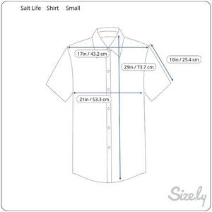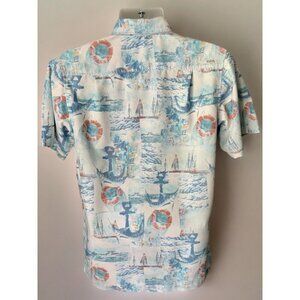 Salt Life Mens Hawaiian Shirt is a size Small, nautical print, short sleeve, button down with a collared front pocket. Made from a comfortable polyester blend, it also features side slits for added mobility.