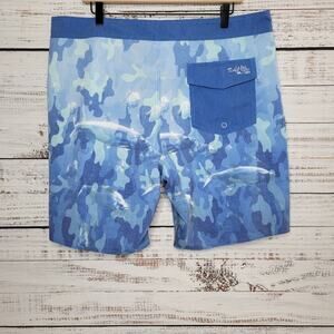 Salt Life Men's Houdini Board Shorts Blue Shark Camo | 38 Waist