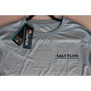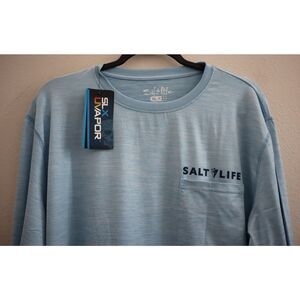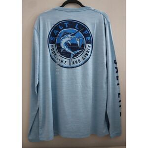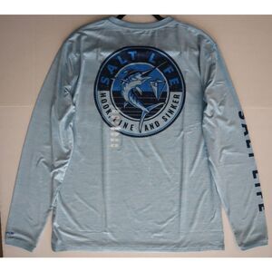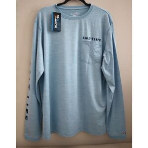 Salt Life Men's Sz L Sky Blue Heather Marlin Sinker Performance L/S Pocket Tee