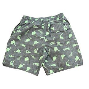 Salt Life Swim Trunks Bathing Suit Shorts Mesh Lined Grey Green Fish Size Medium