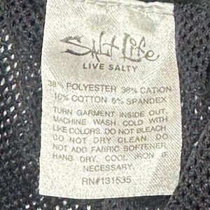 Salt Life Swim Trunks Bathing Suit Shorts Mesh Lined Grey Green Fish Size Medium. These trunks are made of 38% Polyester, 38% Cation, 18% Cotton, 6% Spandex. Measures Waist (lying flat) 14", Inseam 7". This bathing suit is in good, used condition. Ships from a Smoke Free Home. Any questions, please ask. All reasonable offers welcome.