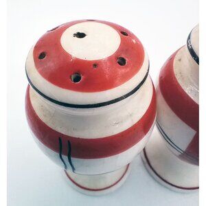 Salt Pepper Shaker Set Plaid Red White Black Japan Vintage 2.75 Inches Crazed