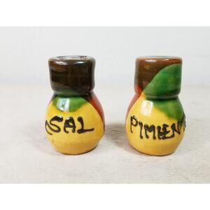Salt & Pepper Shakers Folk Pottery Sal Pimienta 2 1/2" Ceramic 80's Home Decor