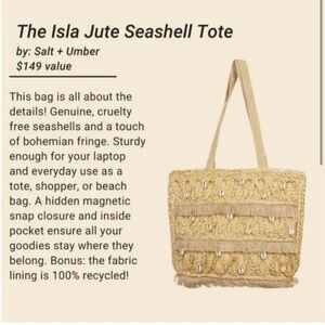 Salt + Umber Boho Isla Jute Seashell Beach Tote Bag New with tags!