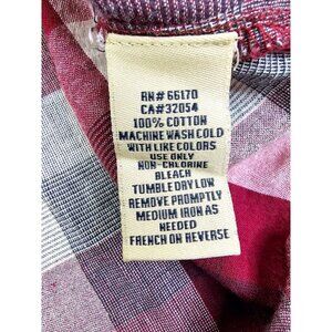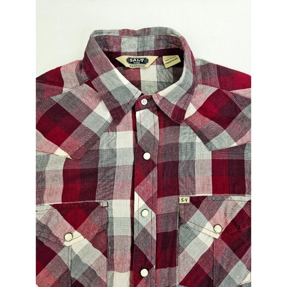 Salt Valley Size Small Mens Marron White Gray Check Pearl Snap Logo Cotton Shirt