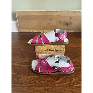 Salt Water Little Girls Toddler 10 Shiny Fuchsia Sandals Leather Flats NEW