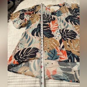 No size or material tag. Please check measurements. Can be worn open as top or swim cover. Can be worn open or closed.