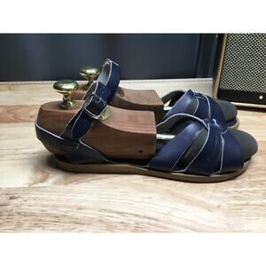 Salt Water Sun-San Swimmer Sandals Kids 5 Navy Leather Buckle Open Toe Comfort