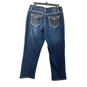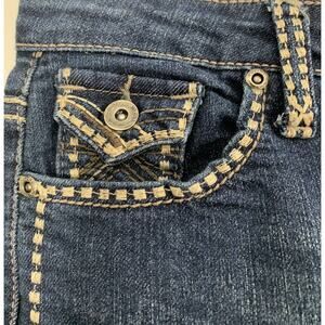Salt Works Crop Jeans Womens 4 Mid Rise Embroidered Dark Wash Denim Flap Pockets
