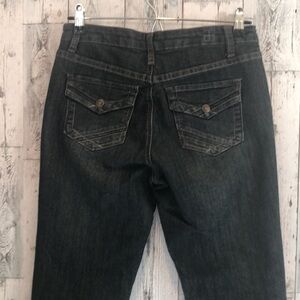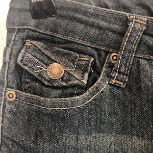 Dark blue, 5 pockets 3 that snap, belt loops, zipper and button closure,colors may vary due to lighting,EUC, Size: 4