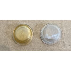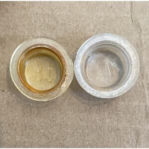 No major chips or cracks visible. Both stops/corks are included. The cork from the pepper shaker is discolored and I’m not sure if that can be cleaned well enough to be clear again so a new one may need to be purchased.