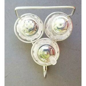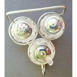 Vintage Salt and Pepper in a Metal Cart Holder Caddy M331