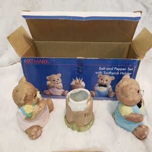Bear Salt & Pepper Shaker and Honey Pot Toothpick Holder