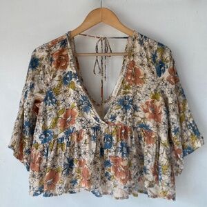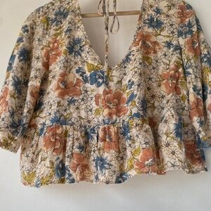 Saltwater LUXE S Floral Peplum Blouse Top.