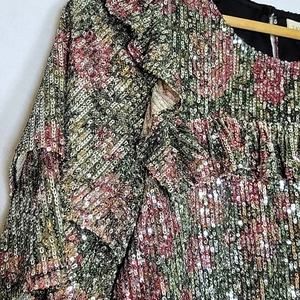 Saltwater LUXE Sequin Floral Print Ruffle Crop Top Size Small S