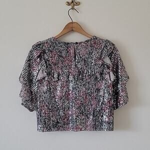 Saltwater LUXE Sequin Floral Print Ruffle Crop Top Size Small S