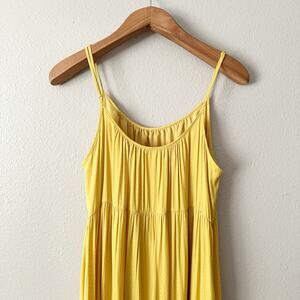 Made from recycled materials, this dress is not only eco-friendly but also incredibly comfortable and stylish. The midi length and tank top design make it ideal for any occasion, from a casual day out to a night on the town. And the bright citron color is sure to turn heads and make a statement wherever you go.