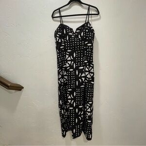 Saltwater Luxe Dottie Middi Dress High Slit Black White Sweetheart Women's Large