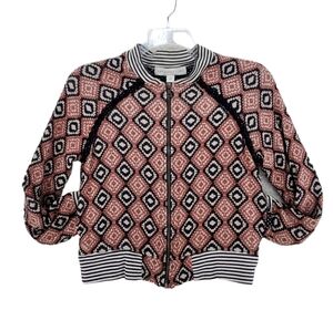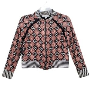 Saltwater Luxe Jacket Wmns M Brown Black White Aztec Crop Bomber Zip Up Lined