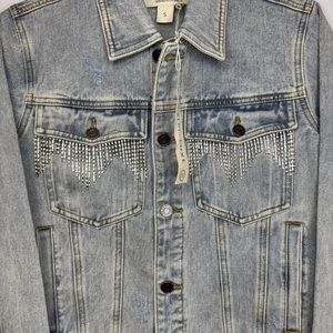 Saltwater Luxe Rhinestone Fringe Denim Jacket Size Small NWT - Runs Big