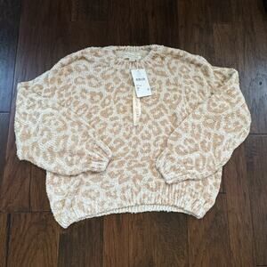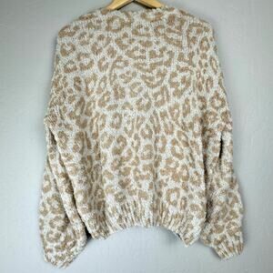 Saltwater Luxe Soft Short Eyelash Knit Sweater Sz Large Cheetah Cozy Lounge NWT